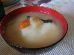 1/3 きいろ実家のお雑煮は味噌仕立て。 関東風しか食べたことのなかったこしろには新鮮な味。 これが結構美味なのです♪ |