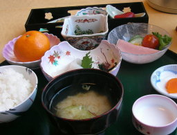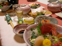 晩御飯は部屋食で。仲居さんの手際の良い動きで、広いテーブルがあっという間にご馳走でいっぱいに。 |