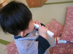 こしろは人見知りをしないうえに、みんな子どもを扱うのはプロなので、きいろは楽チン。感謝! |