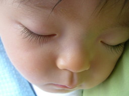 寝るこしろ。実はここ数日、風邪と突発性発疹のダブルパンチで自慢の食欲も今ひとつ…。