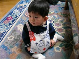 4/27 今日はこしろの誕生日! あっという間の1年でした。 で、1歳の誕生日といえば餅ですね。 ばあちゃん特製のもち袋で挑戦! 普通は重くて泣いちゃうそうなのですが…。 |