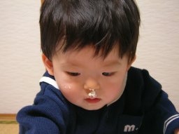 度重なる味見の結果、チョビヒゲ男誕生! 人生初の生クリームはどうだったかな? |