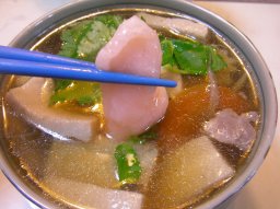 4/28 昨日こしろが背負った餅で雑煮を。紅白の餅が入っている雑煮ってなかなかないよ。 |