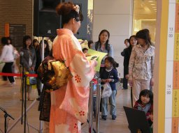 JRタワー1階で、なぜか振袖で紙切りの芸をこなす人。