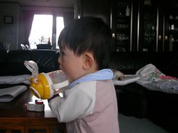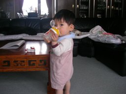 もう1歳だから、自力で立ち上がって勝手にお茶飲んだりできるぜ!とでも言いたげな顔。