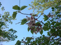 上りきったところには葉桜が。 北海道的5月の風景。 それにしても良い天気(^^) |