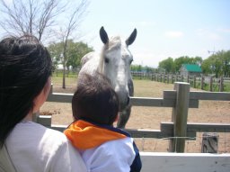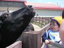 6/5 サッポロさとらんどにてフィールドワーク。 絵本の動物と実際に触れ合おう企画! 牛の大きさにびびるこしろ。 よくみると牛がカメラ目線(^^) |