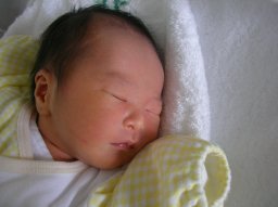 フィールドワークの仕上げはヒトw。 生まれたばかりの男の子。 なんともフレッシュ♪ |