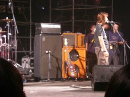 メインに戻ってきたらちょうど THE HIGH-LOWSのステージが。 地面に座ってみていたんだけど、客の動きに合わせて地面が揺れる揺れる! 疾走感あふれるステージに、気づいたら目の前の客がひとりエアギターバトルモードにw。 |
