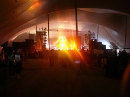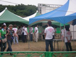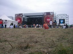 諸般の事情でちょっと到着が遅れたので 氣志団からのスタート。 MC面白すぎ、このひとたち(^^) ←これ、始まる前のシャシンね。実際にはすごい人だかりだった。 |