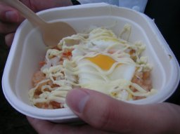 今日の晩御飯。ZEPPさんはナシゴレン。 イマイチだったそうです。 |