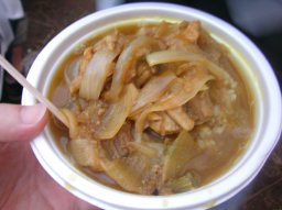 しろは本格インド式チキンカレー。 食べたことのあるルーの味。 というかつゆだくなんですけど…。 |