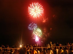 セットチェンジ中には花火なんか上がったりしてお祭り気分(^^) |