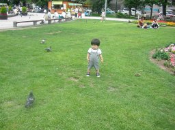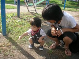 アリを見つけて指差すこしろ。ちょこまか動くさまが面白いのか、我が家では良く見る風景。 |