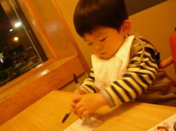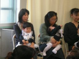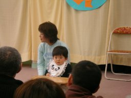 実際にはこんな感じできいろかあちゃんと一緒に 手遊びを。 デジタルズームってビミョウだね…。 |