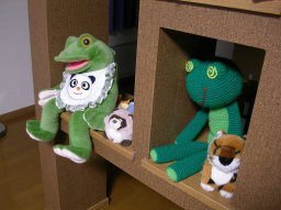 棚一面のカエル。うちもいつかこうなるのだろうか…。