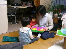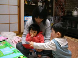 絵本を読んでもらうこしろ&たかゆきこちゃん。