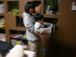 1/13 最近お気に入り、洗濯物入れ。 上機嫌で運ばれてます(^^) デジカメでも流し撮りできるんだね。 |