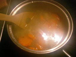 深夜のシチュー作り。現在午後11時54分。