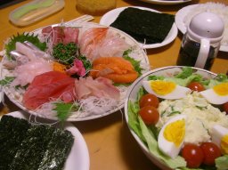 手巻き寿司をご馳走になってしまいました。 2/3は我が家で食べてしまったのではないかと…。 |