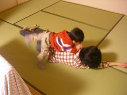 zeppさんの一刀両断!を見守るこしろ。 ちなみに、奥様のことは名前で呼んでたこしろ、zeppさんの ことは「おじちゃ〜ん」とw。 |
