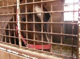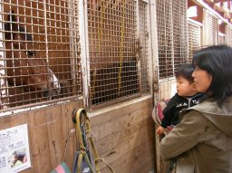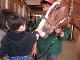お兄さんの粋な計らいで、ちょっと触らせてもらった。 こしろ、ぜんぜん怖がらずお兄さんもびっくり。 ところでウマ、こっちにらんでるねw。 |