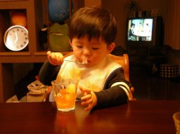 デザートは、これもお手製フルーツポンチ。 27日で2歳になります♪ |